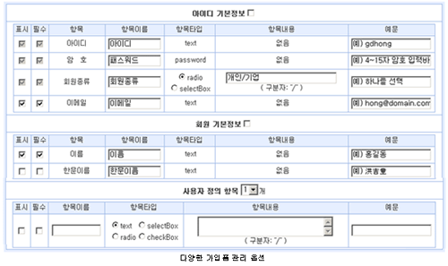 ȸ¿ø°¡ÀÔ ÇÁ·Î±×·¥Àº ȸ¿ø°¡ÀÔÆûÀÇ Ç׸ñÁ¾·ù, Ç׸ñ¼ø¼­¸¦ ¸¶À½´ë·Î Á¶Á¤ÇÒ ¼ö ÀÖ½À´Ï´Ù.